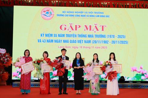 Ngày 18/11/2025, Trường Cao đẳng Công nghệ và Nông lâm Đông Bắc đã long trọng tổ chức buổi gặp mặt kỷ niệm 55 năm xây dựng và phát triển và 43 năm Ngày Nhà giáo Việt Nam 20/11. Đây là dịp để Nhà trường tri ân các thế hệ thầy cô giáo, viên chức, người lao động đã góp phần tạo dựng uy tín và vị thế của Trường trong suốt chặng đường hơn nửa thế kỷ qua.