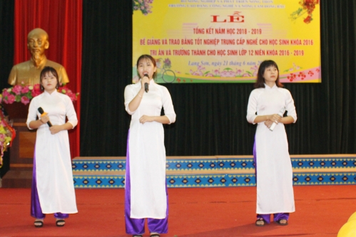 Sáng ngày 21/6/2019, Trường Cao đẳng Công nghệ và Nông lâm Đông Bắc long trọng tổ chức Lễ tổng kết năm học 2018-2019, Bế giảng và trao bằng tốt nghiệp trung cấp nghề cho học sinh khóa 2016; Tri ân và trưởng thành cho học sinh lớp 12 niên khóa 2016-2019 với sự tham dự đầy đủ của các thầy cô giáo trong Hội đồng sư phạm và các em học sinh, sinh viên đang học tập tại trường.Lễ tổng kết năm học là dịp để Nhà trường tổng kết lại một năm diễn ra những hoạt động đào tạo toàn diện, khen thưởng kịp thời những học sinh, sinh viên có thành tích học tập, rèn luyện xuất sắc.