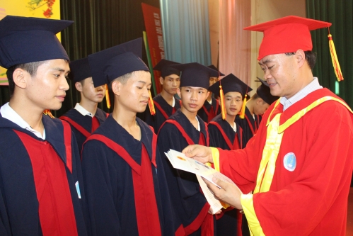 Lãnh đạo Trường phát bằng cho học sinh tốt nghiệp
